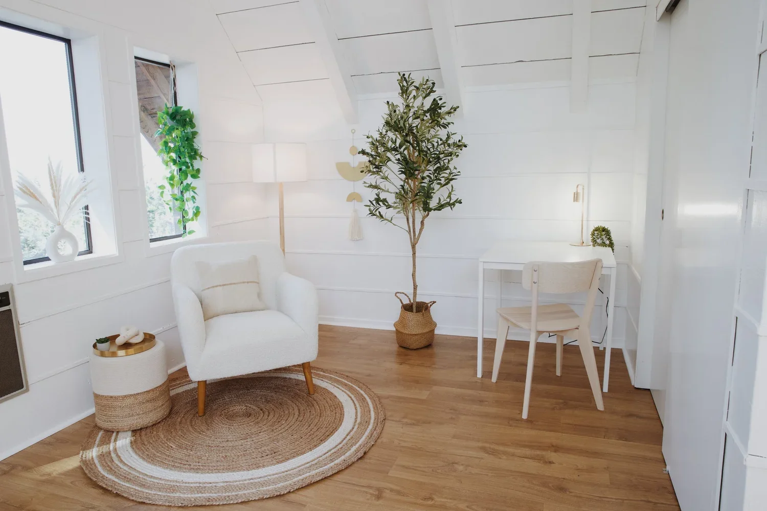 The Mendocino Coast Townhouse is the guest house to the Mendocino Coast House, offering one bedroom, one and a half bathrooms, and picturesque ocean views. This cozy guest house features a contemporary Scandinavian design, adorned with neutral and calming decor, making it the perfect seaside escape.